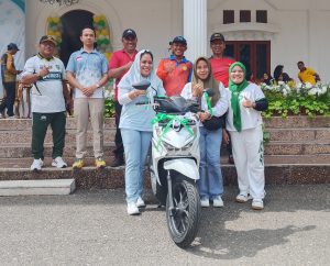 Bupati Fifian Adeningsi Mus juga memberikan motor secara pribadi kepada indri koten bidan yang bertugas di puskesmas pembantu Leko sula lewat Doorprize di hari kesehatan nasional yang berlansung dilingkup istana daerah