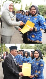 Foto:Bupati Sula Fifian Adeningsi Mus Saat Memberikan SK Kepada PPPK Di Halaman Isda
